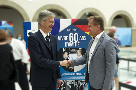 A l'initiative de notre association et avec son concours, Monsieur le Maire de Thonon a accepté d'organiser une petite exposition commémorative et d'inviter la Municipalité d'Eberbach ainsi que notre association-soeur : Die Freunde Thonons.