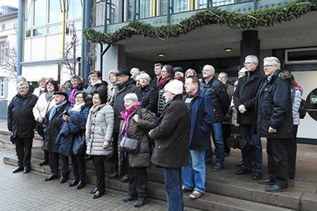 Vendredi 19 Janvier : Le départ a eu lieu à 7 heures devant l’église N-D de Lourdes, avenue de Genève. Pause de midi en route. Arrivée dans l’après-midi à Eberbach. Installation à l’hôtel ou chez les hôtes allemands qui étaient nombreux à accueillir les Amis Français. Après l’accueil officiel en Mairie par le Maire d’Eberbach, cérémonie pendant laquelle notre ami Pierre Chevallay a été honoré pour son implication au sein du Comité de Jumelage, puis au sein de l’association, repas de fête au restaurant Kronepost.